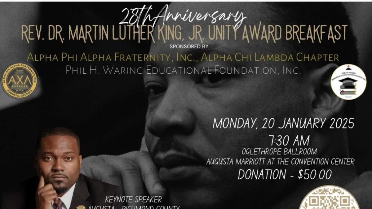 Join us for the 28th Annual Rev. Dr. Martin Luther King Jr. Unity Award Breakfast with keynote speaker Augusta-Richmond County District 1 Commissioner The Honorable Jordan Johnson.