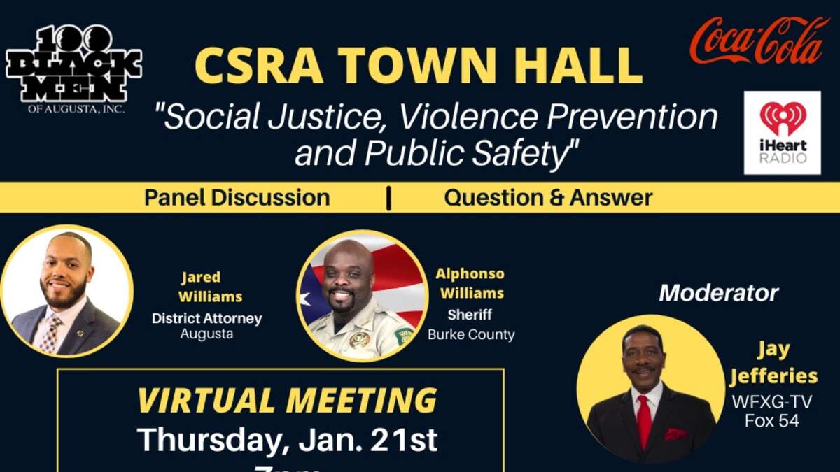 The 100 Black Men of Augusta & Coca Cola Present, 96.3 Kiss FM, and Power 107 Welcome the CSRA Town Hall Meeting- Social Justice Violence Prevention and Public Safety, Thursday, Jan. 21st 7PM. Hear from criminal justice experts like Richmond County Sheriff Roundtree and Buke County Sheriff Alfonzo Williams, Richmond County Marshal Ramone Lampkin, North Augusta Public Safety Chief John Thomas, and Richmond County Board of Education Chief Reginald Wade. Don't miss this important virtual Town Hall Meeting. Register now at 100blackmenofaugusta.org. You will receive your ZOOM detail upon registration.